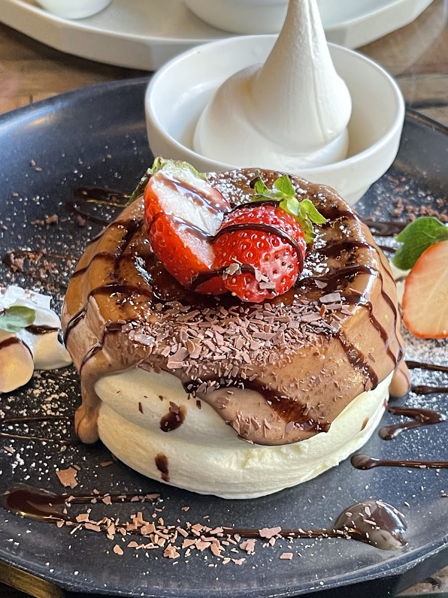 Really good Japanese souffle pancakes. But bring a little patience with you because the line can be long and they have limited seats. And if you want to seat at the balcony they will accommodate you if you inform them but you will have to be willing to wait.